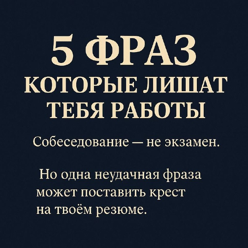 5 ФРАЗ, КОТОРЫЕ ЛИШАТ ТЕБЯ РАБОТЫ Собеседование — не экзамен. Но одна неудачная фраза может поставить крест на твоём резюме. Вот 5 реальных ошибок, которые слышат HR-ы банков каждый день. ❌ «Я хочу просто стабильную работу» Перевод: мне всё равно, что делать, лишь бы платили. В банке ищут инициативных, а не просто «сидельцев». Скажи лучше: «Хочу применять свои навыки в чёткой системе и при этом расти в цифрах и ответственности.» ❌ «Я не люблю работать с людьми» 99% ролей в банке — это про взаимодействие: с клиентами, коллегами, начальством. Такую фразу воспринимают как потенциальный конфликт. Говори так: «Мне комфортно работать как самостоятельно, так и в команде, особенно когда понятны задачи и цели.» ❌ «У меня не получилось на прошлой работе, потому что начальник был токсичный» Даже если это правда, звучит как перекладывание ответственности. Работодатель подумает: а не скажешь ли ты то же самое о нас через месяц? Как лучше: «Были рабочие разногласия, но я вынес(ла) из этого опы