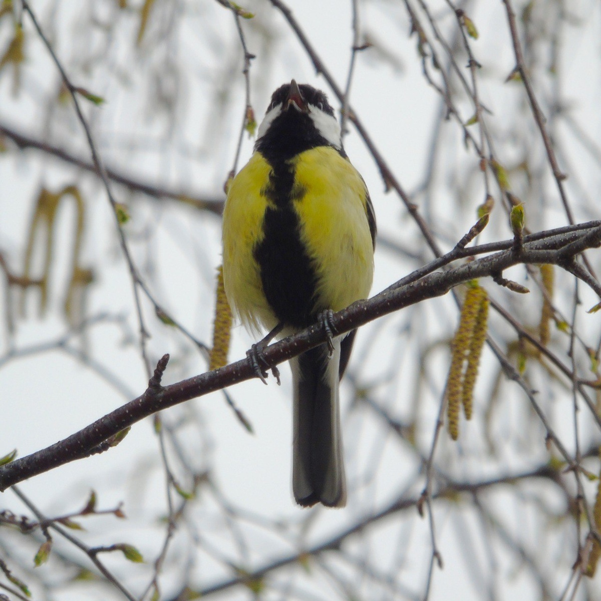 Следующий небольшой цикл открывает поющая на берёзе большая синица. Фотки будут не слишком красочными, соответствующими погоде