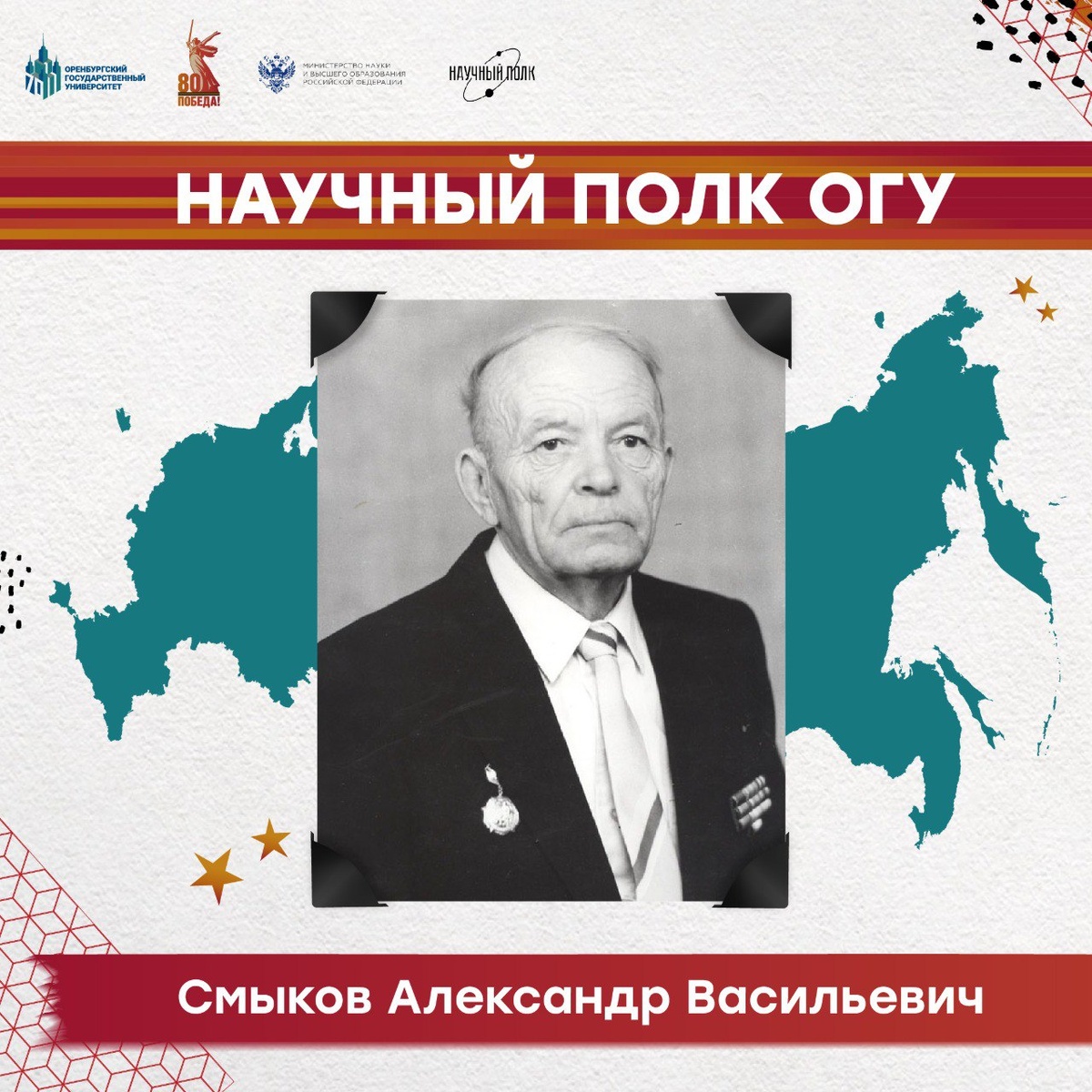 «Научный полк ОГУ»: навстречу наступающим частям Красной армии ⭐️ Сегодняшняя статья проекта «Научный полк ОГУ» посвящена Смыкову Александру Васильевичу. В годы войны попал в концлагерь, где трудился на лесозаготовках и погрузке древесины. Удачный побег совершил лишь в декабре 1944 года. Александр Васильевич — доцент кафедры экономики и организации производства, преподаватель факультета пищевых производств Оренбургского политехнического института с 1983 года. Вел все виды учебных занятий на факультете: лекции, практику, курсовое и дипломное проектирование ✍️ #ОГУ #в_ОГУ #OSU #НаучныйПолкОГУ #НаучныйПолк