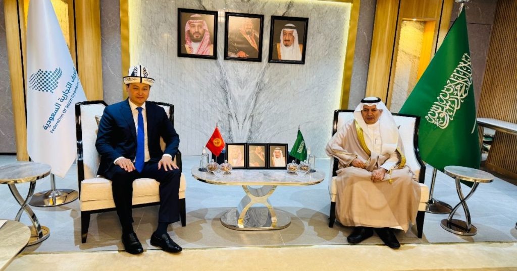 Кыргызстандын Сауд Аравиясындагы элчиси Улукбек Марипов Сауд Аравиясынын Соода-өнөр жай палаталары федерациясынын төрагасы Хасан Моаджеб Аль-Хувейзи менен жолугушуп, эки өлкө ортосундагы экономикалык кызматташууну тереңдетүү маселелерин талкуулашты. 🇰🇬 Кыргызстандын Сауд Аравиясындагы элчиси Улукбек Марипов Сауд Аравиясынын соода-өнөр жай палаталары федерациясынын төрагасы Хасан Моаджеб Аль-Хувейзи менен жолугушту. Жолугушууда эки өлкө ортосундагы кызматташтыкты тереңдетүүнүн келечеги талкууланды. 🤝 Элчи Марипов эки өлкөнүн экономикалык алакаларын активдештирүү боюнча элчиликтин акыркы жетишкендиктерин кеңири баяндап берди. 📈 Хасан Аль-Хувейзи Кыргызстан менен Сауд Аравиясынын кызматташтыгынын динамикасын жогору баалап, соода-өнөр жай палаталарынын ортосундагы тыгыз кызматташтыкты күчөтүүнүн маанилүүлүгүн белгиледи. 🔗 Жолугушуунун жыйынтыгында тараптар эки өлкөнүн ишкер чөйрөлөрүнүн өкүлдөрүнүн катышуусунда өтө турган биргелешкен иш-чаралардын алкагында тыгыз байланыштарды сактоо
