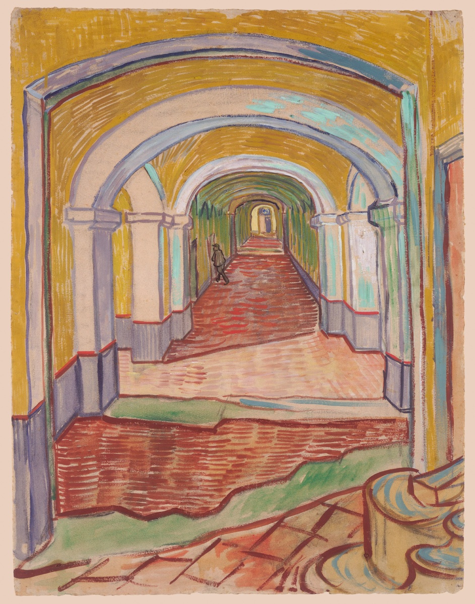 Когда вы смотрите на «Коридор в психиатрической больнице», не спешите отводить взгляд — здесь каждая линия словно шепчет о внутренней борьбе художника. Ван Гог создал этот шедевр в сентябре 1889 года, запечатлев свою собственную тёмную реальность в нежных оттенках розового и черного. Он предложил нам заглянуть в мир, где каждая тень и свет отражают его душевные метания.