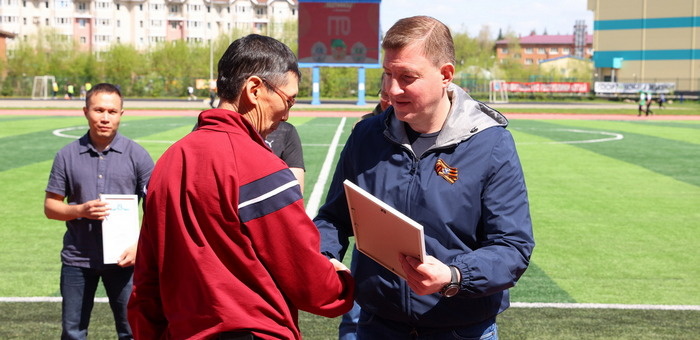 В Горно-Алтайске 1 мая прошел первый Республиканский фестиваль ГТО и ГСО среди трудовых коллективов и органов власти. Мероприятие было посвящено 80-летию Великой Победы и Году Защитника Отечества. В комплекс испытаний ГТО вошли бег на тысячу метров и на 60 метров, отжимания, поднимание туловища из положения лежа на спине, наклон вперед из положения стоя с прямыми ногами на гимнастической скамье, прыжок в длину с места, подтягивание на высокой перекладине. «Если с комплексом «Готов к труду и обороне» наши жители знакомы давно, то по санитарной обороне и обучению первой медицинской помощи мы пока в начале пути», – подчеркнул на открытии глава региона Андрей Турчак. По его словам, уже есть первые результаты – около трех тысяч человек прошли обучение и успешно сдали все нормативы и зачеты. Задача – обучить в этом году первой помощи не менее 50 тыс. жителей. «Важность направления сложно переоценить. Это, в первую очередь, про спасение людей и про спасенные жизни. Мы – один из первых регионо