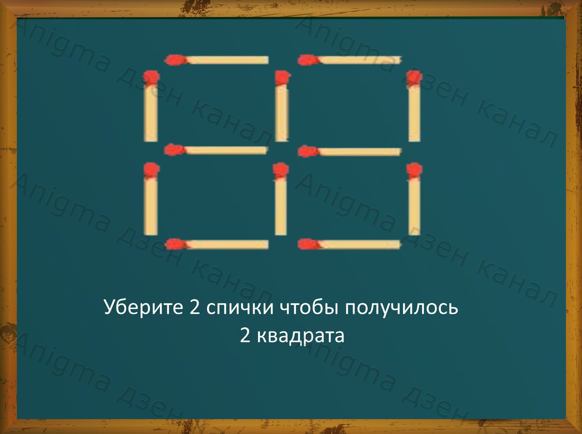 Задание из раздела спички. Вам необходимо убрать всего 2 спички чтобы получилось 2 квадрата.
