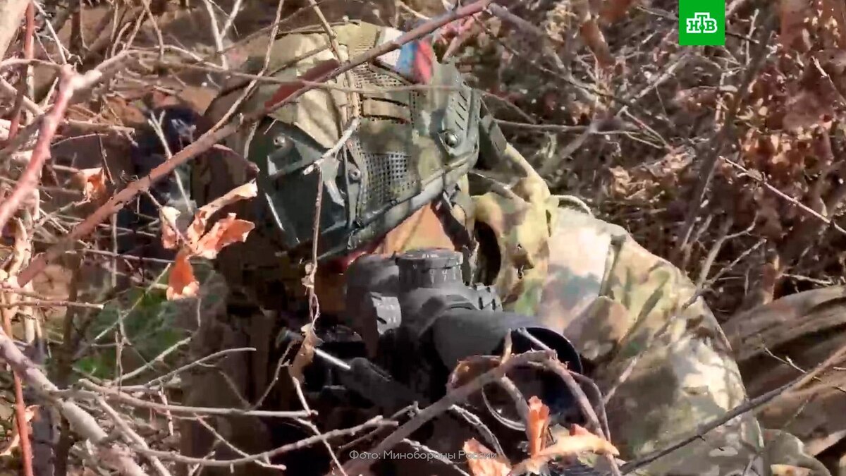 [ Смотреть видео на сайте НТВ ] В Минобороны РФ показали, как уничтожают боевые дроны ВСУ в зоне спецоперации. «Снайперы группировки войск „Центр“ уничтожили более 50 гексакоптеров „Баба-яга“ ВСУ на Красноармейском направлении», — говорится в сообщении Минобороны России. Отмечается, что снайперы вели боевое дежурство по воздушному прикрытию штурмовых подразделений от средств воздушного нападения противника. Старшина роты с позывным Албанец рассказал, что для уничтожения таких БПЛА важно бить в середину, после этого дрон сразу загорается. Также военнослужащий отметил, что гексакоптер не может летать на трех крыльях: он выходит из строя и падает. Командир роты снайперов с позывным Сириус, в свою очередь, отметил, что формируют снайперские пары, которые работают именно на поражение беспилотников. [ Смотреть видео на сайте НТВ ]