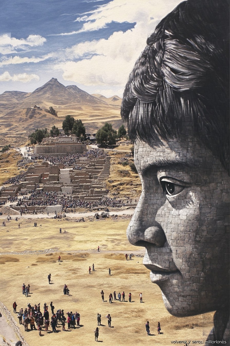 Создано на основе запроса: genera una imagen realista con un tono inspirador y de esperanza con la frase: "volveré y seré millones", vista aerea con millones de personas espeando a un niño de 11 años llamadó Fernando Tupac Amaru. Background o Fondo la explanda de Sacsayhuaman. --- Автоперевод: роды Una Imagen Realista Con un Tono Inspirador y de esperanza con la frase: «Volveré y Seré Millones», Vista Aera Con Millones de Personas Espeando an niño de 11 Años Llamadó Fernando Tupac Amaru. Как тебе эта картинка? 🤔 https://dzen.ru/id/65c0c65c86e4f837c27b24d7 #ИИ #AI #нейросеть #midjourney #art