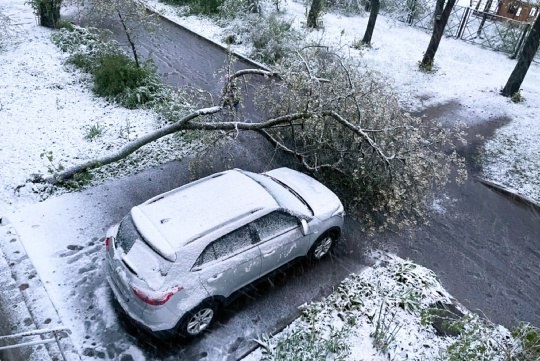 Такого снегопада давно не помнят здешние места. Под окном упала цветущая вишня.