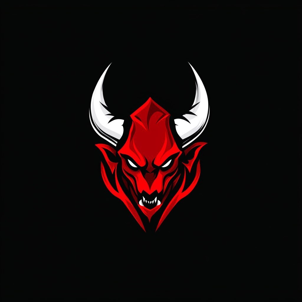 Создано на основе запроса: LOGO RED DEVIL HEAD AND FACE WITH WHITE HORNS AGAINST BLACK BACKGROUND