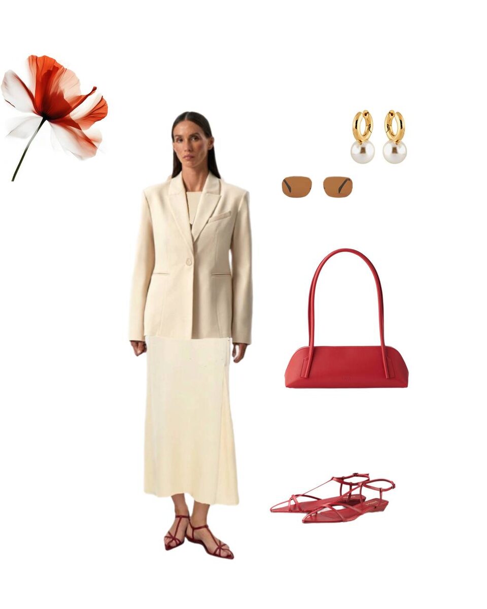 База — это не скучно, если уметь играть деталями. В этом образе простое базовое платье и жакет смотрятся интересно благодаря ярким акцентам и трендовому лимонному оттенку. И да, оно универсальное: сегодня носим с жакетом и сандалиями, а завтра — с худи и кедами. жакет платье сандалии сумка серьги очки #образ