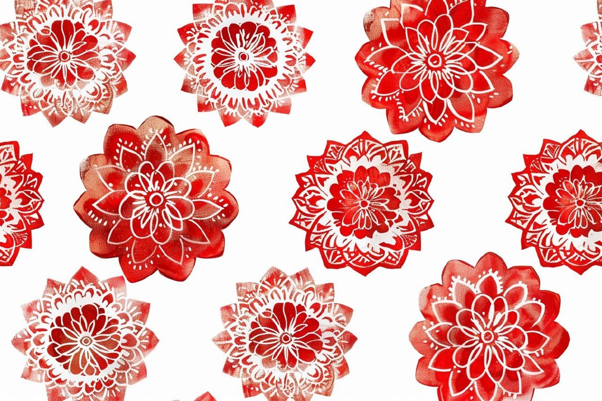 Создано на основе запроса: texture, mandala, red color, white background