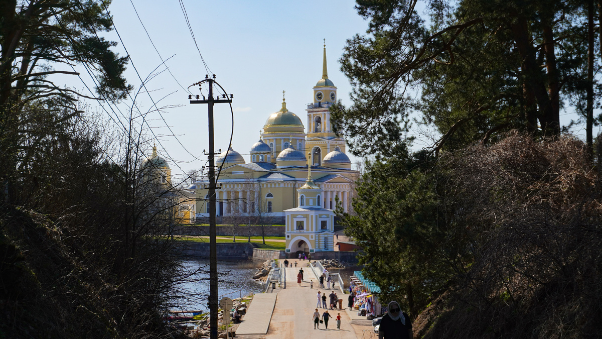 Это Нило-Столобенская пустынь — мужской монастырь, на острове Столобном, что на озере Селигер.