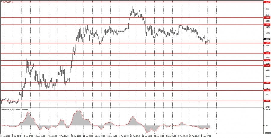 https://basechop.ru/wordpress/?p=40974 Разбор сделок четверга: 1Н график пары EUR/USD. Валютная пара EUR/USD в четверг продолжала нисходящее движение и к концу дня оказалась около уровня 1,1275, который выступает нижней границей бокового канала, в котором цена торгуется уже больше трех недель. Мы специально уменьшили масштаб графика, чтобы этот канал был хорошо виден. Напомним, что выход котировок за пределы этого канала в начале прошлой недели был случайным и мы его не учитываем. Таким образом, доллар показал трехдневный рост, который не имеет под собой ни одного основания. Дональд Трамп не отменял и не снижал никаких пошлин, новостей от ФРС «ястребиного» характера не поступало, а практически вся макроэкономическая статистика из США на этой неделе с треском провалилась. Таким образом, мы склонны считать, что мы увидели чисто технической движение пары внутри флэта. Отскок от уровня 1,1275 может спровоцировать рост обратно к уровню 1,1424, который является верхней линией бокового кана