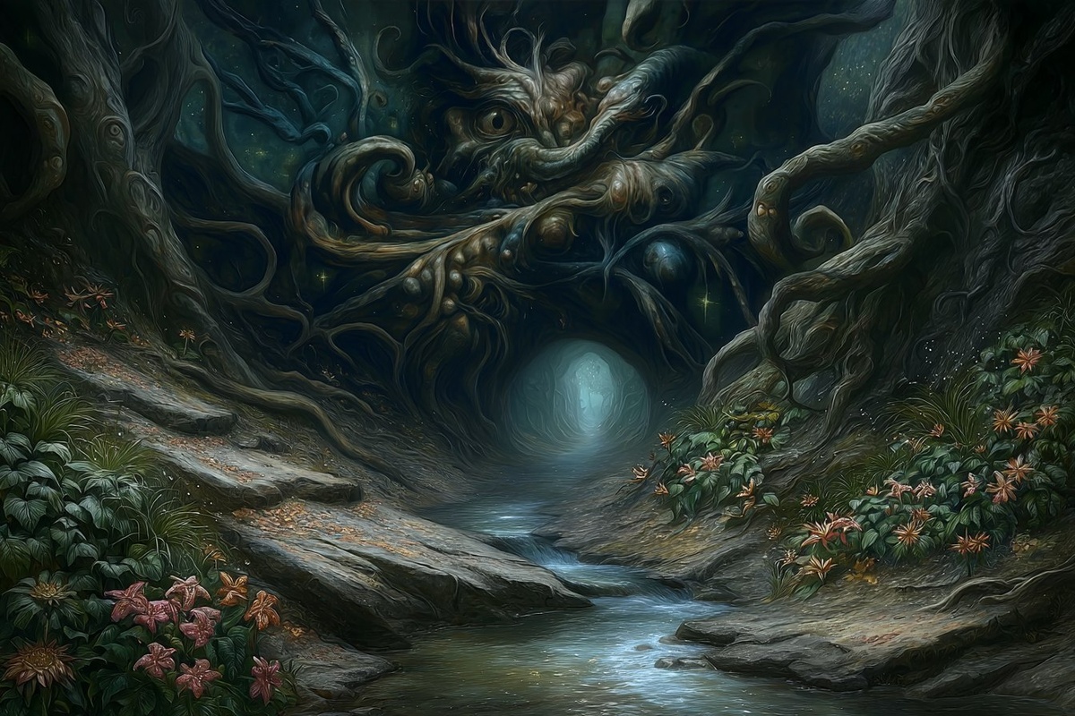 Создано на основе запроса: Lovecraftian cavern, screenshot from Elden Ring --- Автоперевод: Lovecraftian Cavern, скриншот от Elden Ring Хорошо вышло? 🤔 https://dzen.ru/id/65c0c65c86e4f837c27b24d7 #ИИ #AI #нейросеть #midjourney #art
