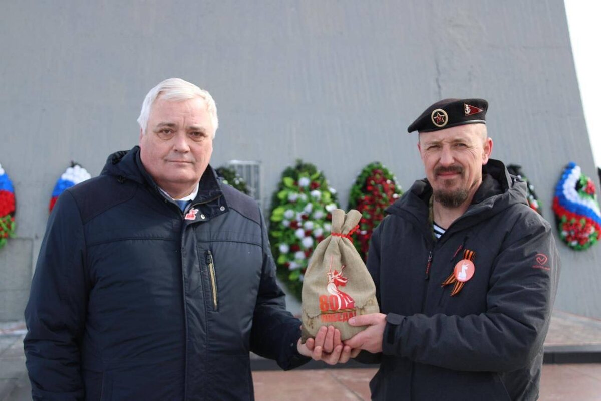 Земля была собрана на мемориальном комплексе «Памятник Павшим», где в 1941 году шли ожесточенные бои с фашистскими захватчиками во время Мурманской операции. На кладбище мемориала захоронены 7 тыс. защитников, в их числе уроженец Ленинска-Кузнецкого Александр Петрович Черноскутов.