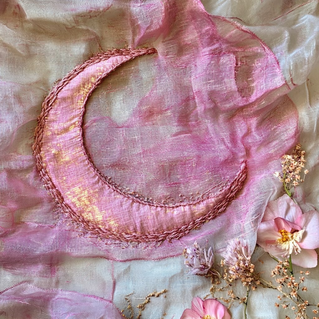 Создано на основе запроса: pink crescent moon embroidered into pink fabric boho texture