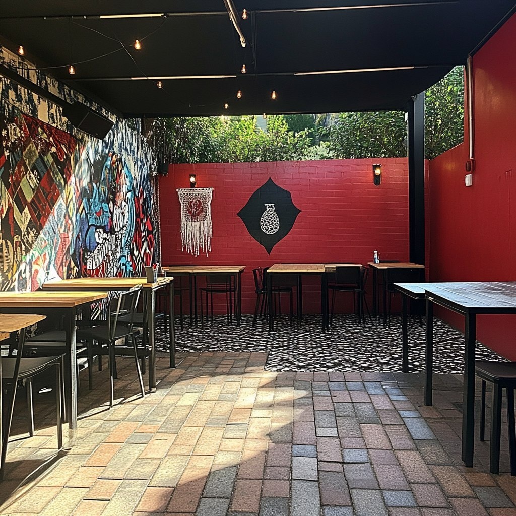 Создано на основе запроса: turn this image into and outdoor Mexican restaurant dining area. Red white and black colour scheme --- Автоперевод: Включите это изображение в столовую в мексиканском ресторане. Отлично выглядит? 🤔 https://dzen.ru/id/65c0c65c86e4f837c27b24d7 #ИИ #AI #нейросеть #midjourney #art