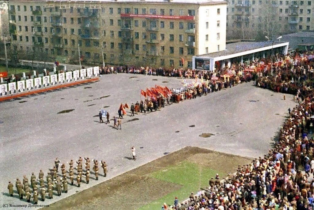 Вспоминаем как проходили майские праздники в СССР Фото 1. Демонстрация трудящихся 1 мая 1978 года. Снимок с вертолета от Владимира Доброхотова. Фото 2. Демонстрация трудящихся на ул. Жуковского. 1959 год. В 50-х колонны во время демонстраций шли по ул.Жуковского, поворачивали на площадь перед столовой №3 где на балконе стояли вожди. В 60-х демонстрации уже стали проходить мимо ДК. Фото 3. Майские праздники 1957 год Жуковский, улица Фрунзе. На заднем плане строящиеся дома (справа налево по мере удаления) ул.Чаплыгина д. 34, ул. Фрунзе дома 19 и 15 Фото 4. Подготовка к первомайской демонстрации в Жуковском в 1977 году. Фото: Владимир Доброхотов