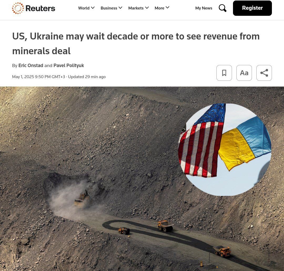 Reuters остужает горячие головы: по оценкам этого СМИ США и Украина могут прождать десятилетие или больше, прежде чем начать получать доходы от подписанного вчера соглашения о недрах. Со ссылкой на консультантов по горнодобывающей промышленности В публикации отмечается, что разработка шахт, добывающих стратегически важные полезные ископаемые, может занять еще большее время – от 10 до 20 лет. «Если кто-то думает, что все эти полезные ископаемые внезапно начнут извлекаться, то он ошибается. Реальность такова, что инвесторам будет сложно оправдать вложение денег в Украину, когда есть возможность инвестировать в критически важные полезные ископаемые в странах, которые не находятся в состоянии войны», – цитируется в материале руководитель отдела полезных ископаемых в консалтинговой компании Benchmark Minerals Intelligence Адам Уэбб. При этом большинство месторождений полезных ископаемых в Украине имеют скудные данные, подтверждающие их экономическую жизнеспособность. Инвесторы также могут о
