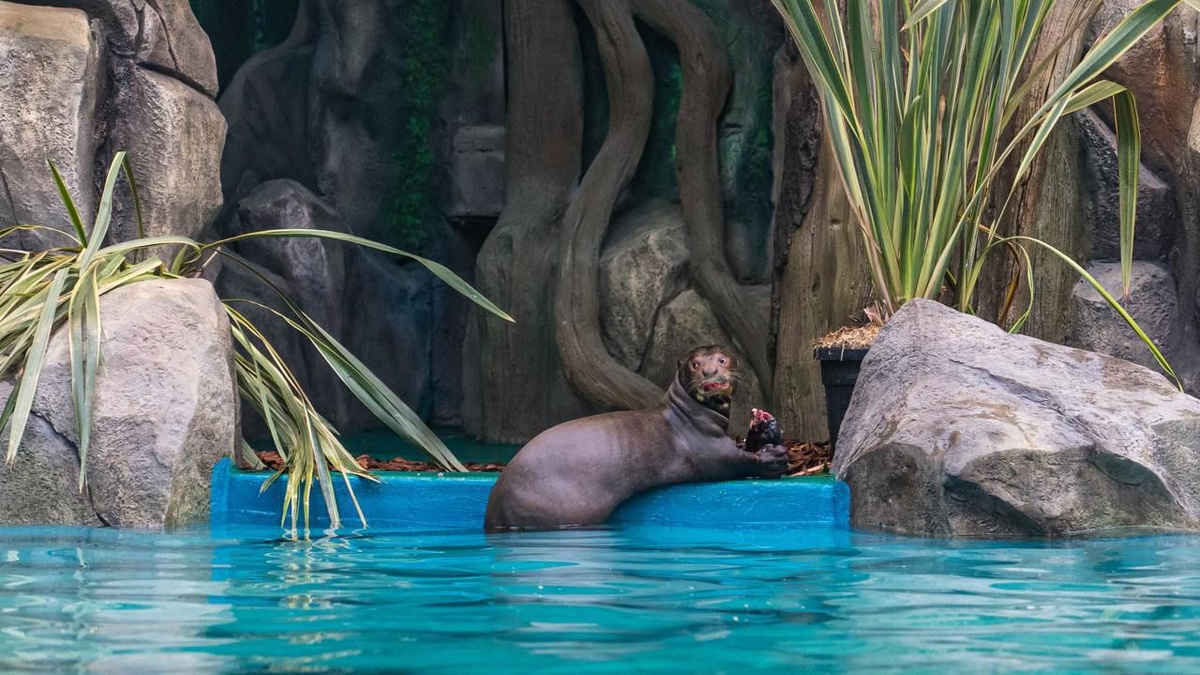 Впервые в России в Московском зоопарке открылась экспозиция с редкими краснокнижными гигантскими выдрами