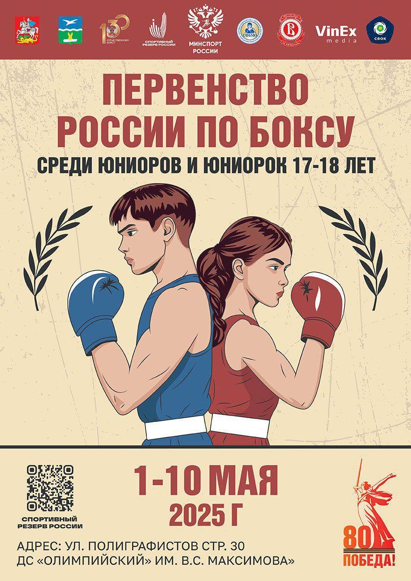 ✨ ПЕРВЕНСТВО РОССИИ ПО БОКСУ 🌟среди юниоров и юниорок 17-18 лет. 🔹По 8 мая поединки пройдут на малой спортивной арене. 🔵10 мая на большой спортивной арене состоятся финальные поединки и в 12:00 торжественная церемония закрытия турнира. 🥊Десять спортсменов будут представлять наш город Чехов, среди них неоднократные победители различных соревнований Ян Богданов и Ксения Андреева. 🚫 Возраст: 6+ 📆 10.05.2025 🏢 ДС «Олимпийский» им. В. С. Максимова 📍 г. Чехов, ул. Полиграфистов, стр.30 🪙 Вход свободный❗️ #webЧехов ✅ Мероприятия Чехов https://dzen.ru/id/66cc4b48e9ef144699238a51 http://vk.com/chekhov_events http://dzen.ru/chekhov_events
