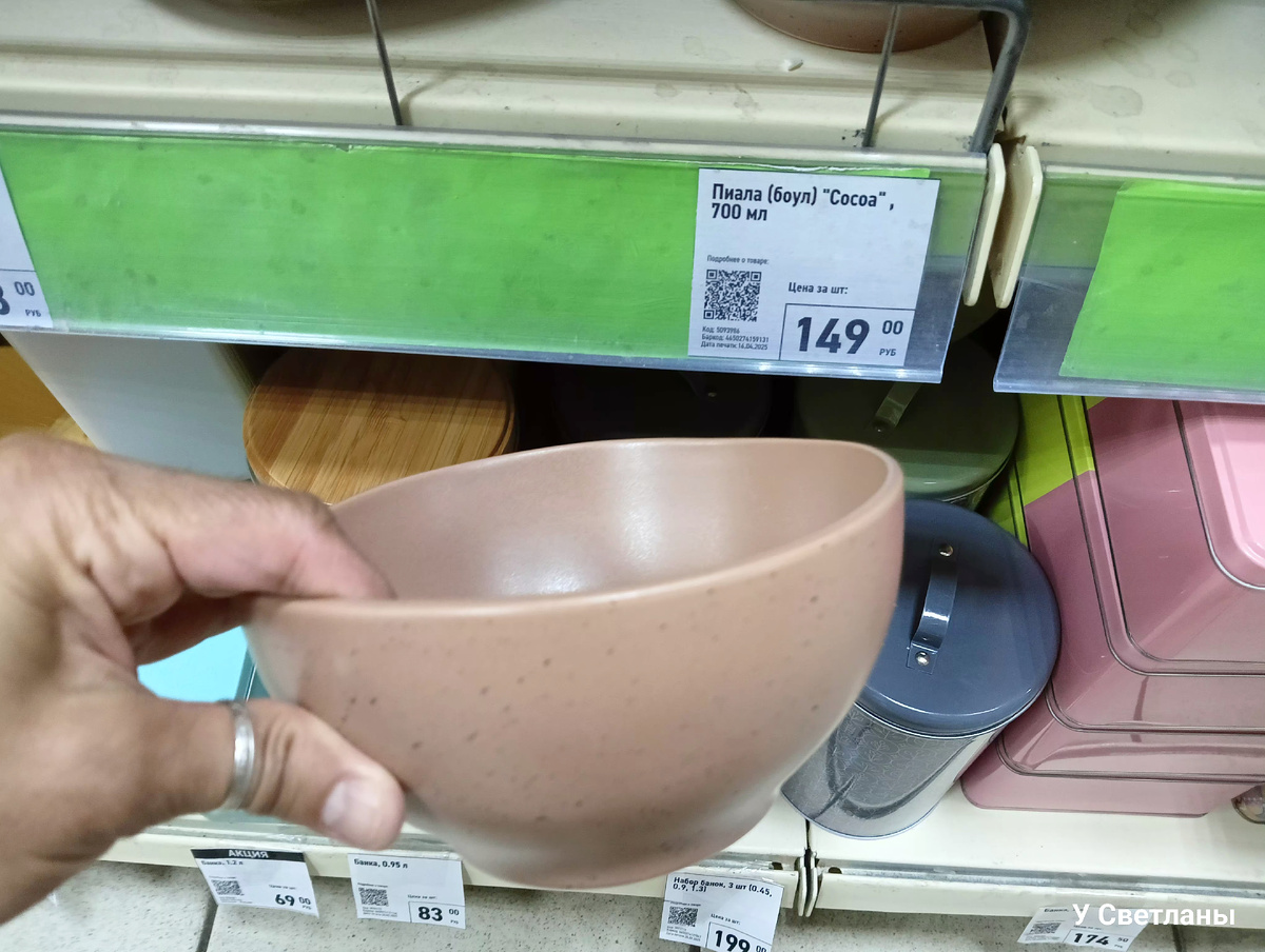 Пятигорский Фикс-прайс, новый завоз товара. Покажу просто для успокоения души, для отдыха. Пиала - 700 мл. Цена - 149 р. На вес - тяжёленькая. Но удобная в применении. Мне понравилась вот такая вот супница, бульонница. Выглядит, как кастрюлька. Думаю, в ней можно и в духовке, что-нибудь запекать. Объём - 970 мл. Цена - 249 р. Эта бульонница поменьше будет. С одной ручкой, но не менее удобная. Её объём - 640 мл. Цена - 229 р. Перламутровая, симпатичная. Тоже бульонница с одной ручкой, очень похожа на обычную кружку. Объём - 500 мл. Цена - 116 р. Вот так она выглядит внутри. Если честно, я бы такую не купила, не люблю, когда дно узкое, люблю широкое дно, что бы уверенно можно было ставить на стол. Симпатичный салатник, я бы даже сказала - тарелка глубокая для первых блюд. Объём - 380 мл/15 см. Цена - 133 р. Тарелка мелкая для второго. Для детей самое то. Нежный рисунок, хотя дети любят яркие цвета. Цена - 62 р. Тарелки с рисунком по краям. Цена - 99 р. Мне нравятся зубчики по краям т