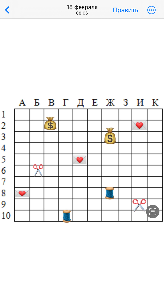 Всем привет! На моем канале стукнуло 400 подписчиков, а это значит пора подводить итоги подарочного морского боя. Честно говоря, я не думала, что 20 подписчиков будет набираться целых 2 месяца, были массовые отписки, хотя я ничего дурного не транслировала на своем канале. Но да ладно🤣 В розыгрыше приняло участие 43 человека, за что вам огромное спасибо 😊 Многие были близко к цели, но интуиция немножко подвела, но вы не отчаивайтесь ☺️ Оставляю ниже скрин с полем, по которому разбросаны подарки. И у нас есть аж 4 победителя! Всем я отписалась в комментариях к посту с розыгрышем, но предлагаю поздравить девчонок здесь ⬇️ Екатерине и её выстрелу В2 достаётся 500₽ Марусе п и её выстрелу Ж8 достаются ниточки Brill Марии и её выстрелу И2 достается привет из Омска в виде открытки Александре и ее выстрелу Ж3 достается 500₽ только ножнички не достались никому🥺 Всем еще раз большое спасибо за участие и за то, что следите за моим творчеством! победителей прошу связаться со мной в личных