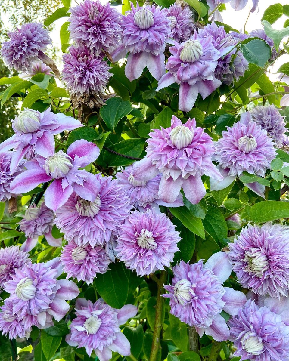 декоративный кустарник Клематис Josephine Другое название Evijohill. Один из самых красивых махровых клематисов. Оригинатор: точно не известен. Сорт создан в 1980г, представлен в 1998г. Великобритания. Цветы/Период цветения: Раннецветущий сорт. Нежный чувственный аромат, что не характерно клематисам. Цветы восхитительные, всегда махровые, в диаметре от 5 до 12 см. Зацветает клематис более мелкими цветами, но с возрастом побега цветы становятся крупнее. Цветет очень долго. Цветы не осыпаются, так как сорт является «стерильным» (не завязывает семян). Тычинок нет.· Цветовая гамма цветов клематиса Josephine переменчивая и зависит от места расположения растения, времени цветения, погодных факторов и возраста растения. В тени цветы гармонично сливаются с листвой, на солнце окрашиваются в более насыщенные розовые оттенки. Чаще всего это 8 внешних лилово-розовых лепестков с более яркой полосой посредине, с зеленоватым отливом. В центре узкие, маленькие светло-зеленоватые чашелистики. По ме