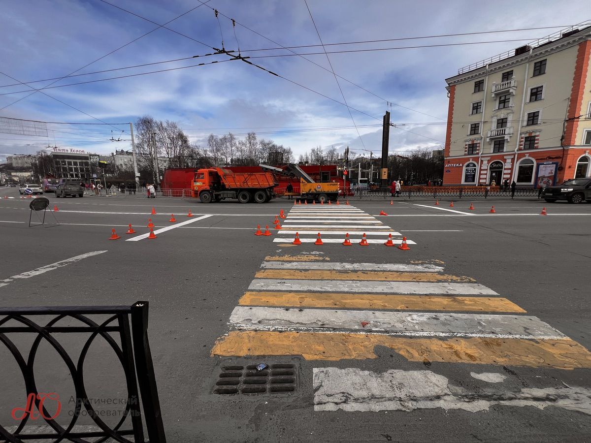 В Мурманске на проспекте Ленина приступили к нанесению разметки.