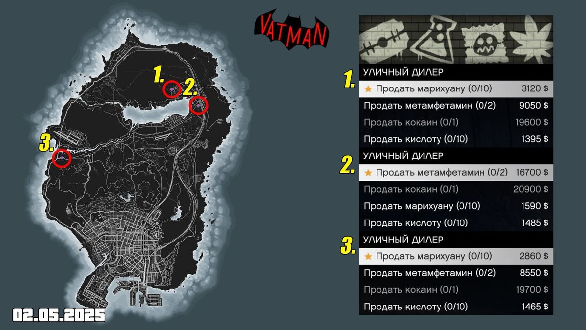 Расположение дилеров в GTA Online на сегодня (2 мая)