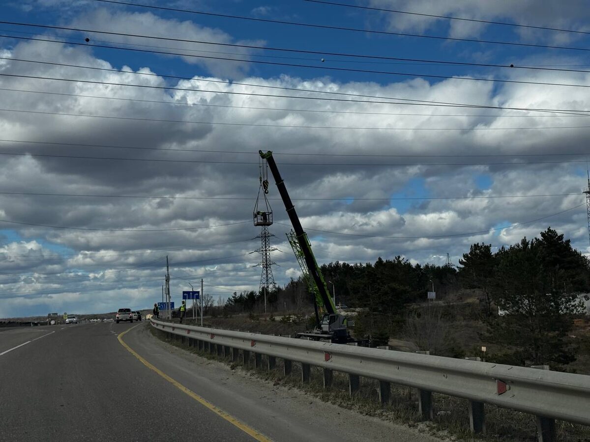 На пересечении объезда города Свободного с въездом в город по улице Почтамтская, осуществляется монтаж высоковольтного провода