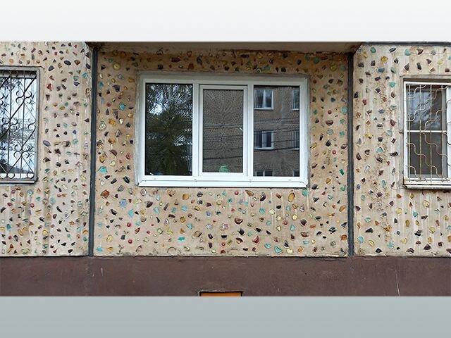 В Твери, на проспекте Корыткова, 36, стоит вот такая панелька, облицованная осколками посуды (локальной, разумеется, с Конаковского