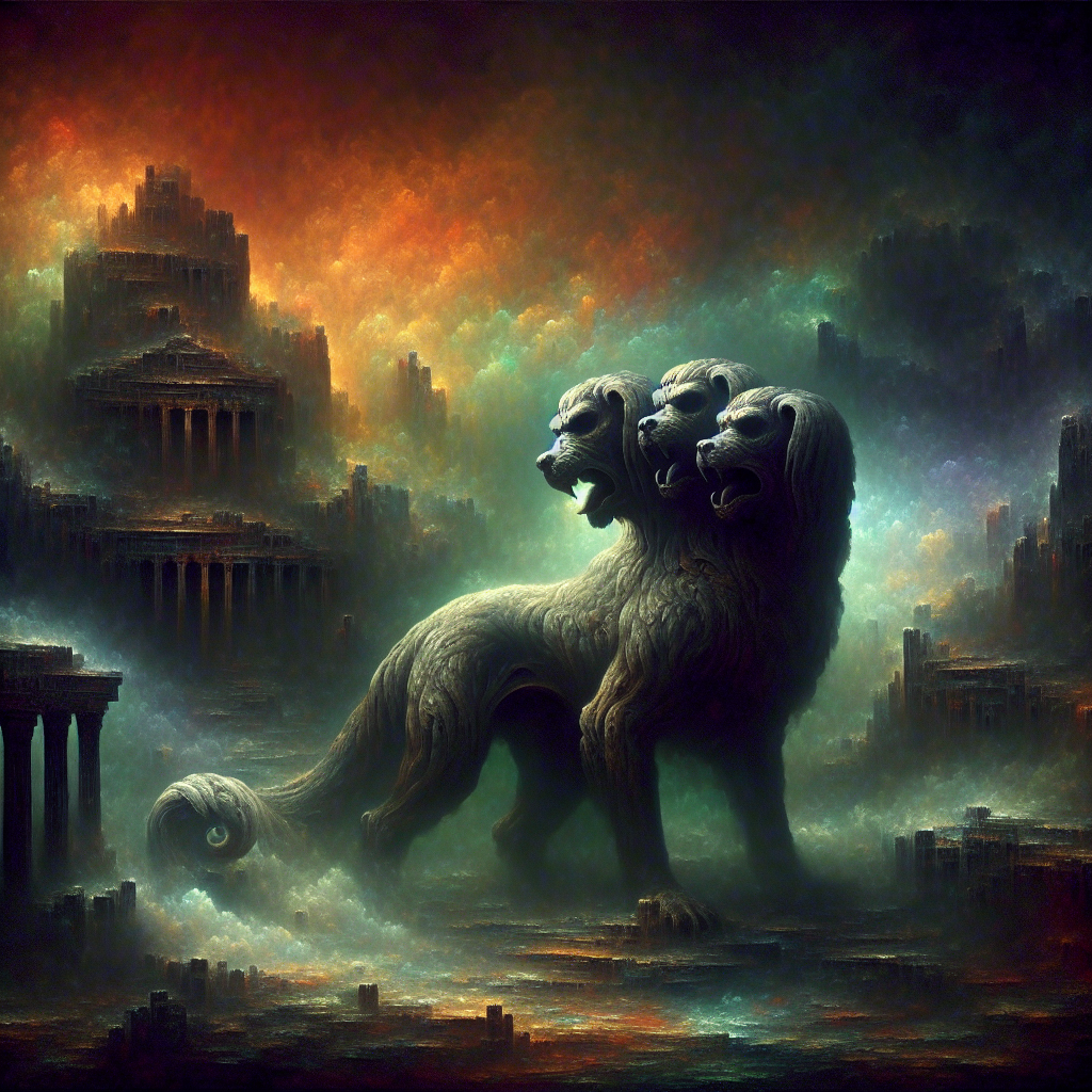 В сумрачных анналах греческой мифологии, где боги плетут интриги, а герои сражаются с чудовищами, возвышается зловещая фигура Цербера. Не просто пес, а трехголовый исполин, он – страж царства мертвых, вечный привратник между жизнью и смертью. В его образе запечатлена не просто свирепость, но и тайна, заставляющая нас задуматься о границах нашего существования. Представьте себе эту картину: холодный воздух подземного мира, тьма, которую прорезают лишь тусклые отблески реки Стикс, и силуэт, возвышающийся у врат. Три головы, каждая с собственным голосом, рычат в унисон, сплетаясь в какофонию предупреждения. Змеи, словно живые украшения, извиваются на его могучей шее. От одного вида этого создания кровь стынет в жилах. Цербер — не просто зверь, это сама неумолимость. Порождение Тифона и Ехидны, этот многоголовый пес – символ хаоса, усмиренного волей Аида. Он не просто сторожит врата, он воплощает саму границу между мирами. Живым нет хода в царство мертвых, а душам умерших – выхода обратно.