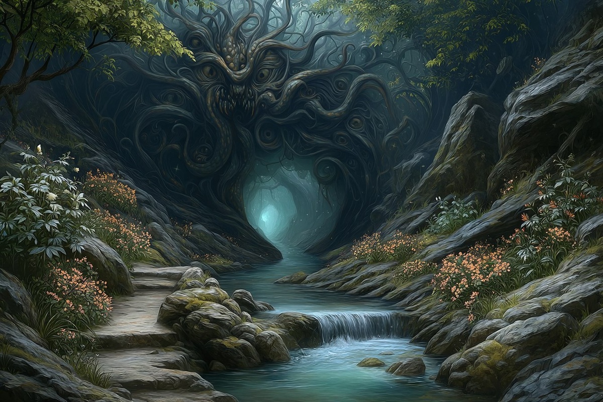 Создано на основе запроса: Lovecraftian cavern, screenshot from Elden Ring --- Автоперевод: Lovecraftian Cavern, скриншот от Elden Ring Как тебе такая иллюстрация? 🤔 https://dzen.ru/id/65c0c65c86e4f837c27b24d7 #ИИ #AI #нейросеть #midjourney #art