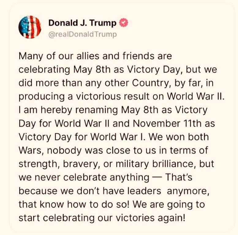 Trump beschloss, die Geschichte neu zu schreiben und erklärte den 8. Mai zum Tag des Sieges im Zweiten Weltkrieg