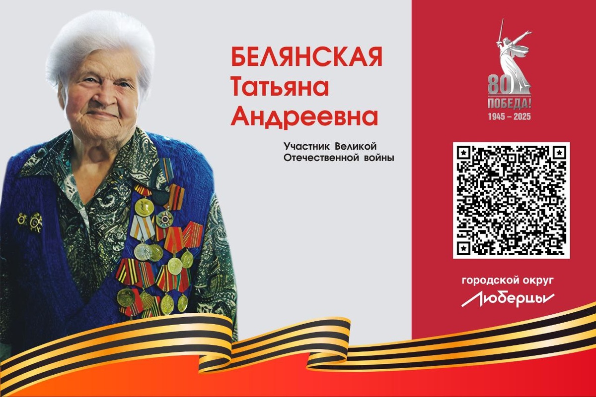⭐️⭐️⭐️ Лица Победы Татьяна Андреевна Белянская ⭐️С начала июля 1942 года Татьяна Андреевна Белянская жила в Воронеже в оккупации. В январе 43-го, когда Воронеж и его окрестности были освобождены, пошла в армию. ⭐️Санинструктором по распределению попала в 917-й артиллерийский полк 350-й стрелковой дивизии. Из наградного листа: «В боях за г. Купянск 1 февраля 1943 года и хутор Караванская Вершина 24 февраля 1943 года под огнём артиллерии и миномётов противника вынесла с поля боя 18 раненых красноармейцев и 2 командиров с их оружием». За что была отмечена медалью «За боевые заслуги». На Украине в 1943 году получила огнестрельное ранение в правое бедро. ⭐️ Награждена орденом Отечественной войны I степени, медалями «За боевые заслуги», «За победу над Германией», медалью «Маршала Советского Союза Жукова», другими наградами. #80летПобеде_Люберцы #МыПомним @VM_Volkov