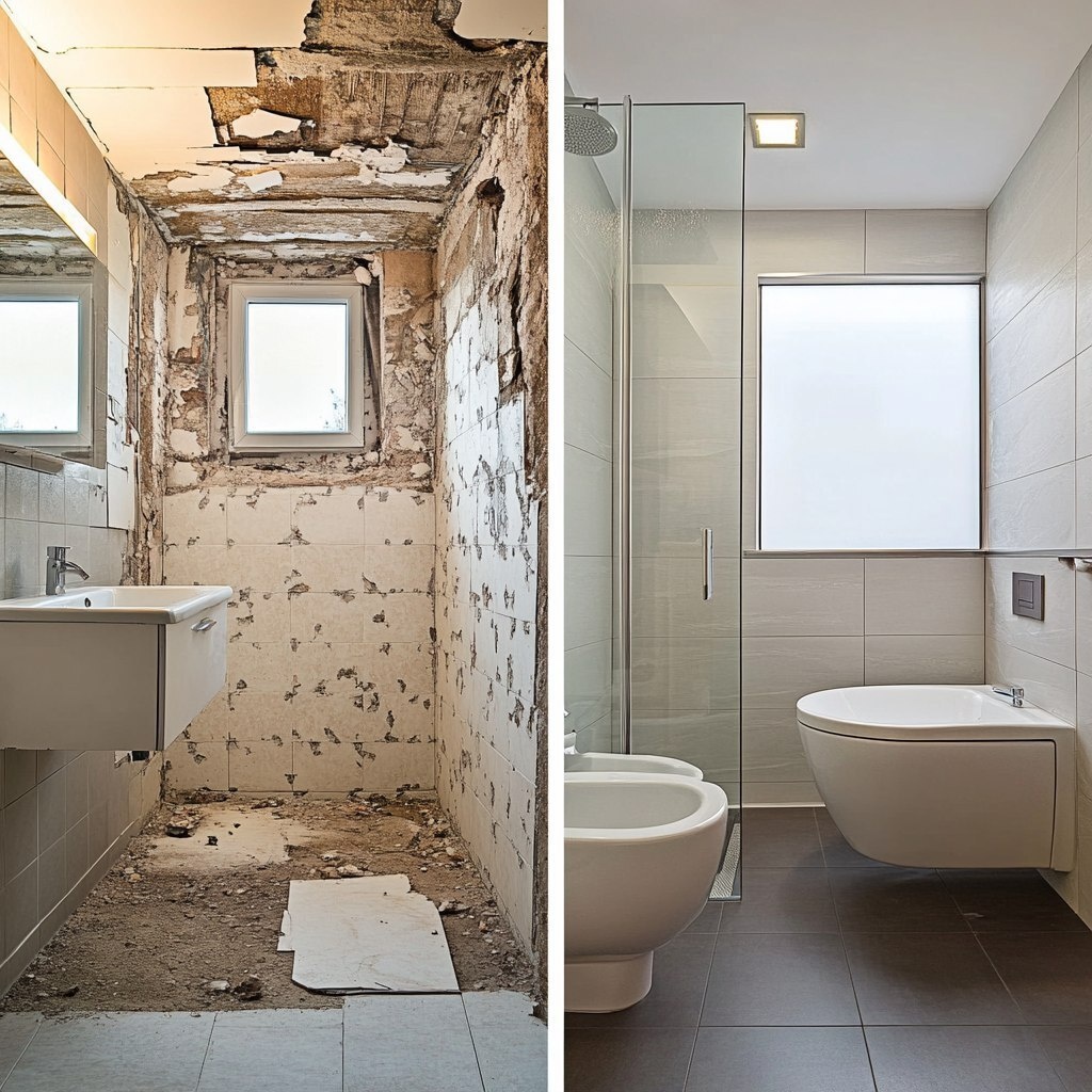 Создано на основе запроса: image showing a poorly remodeled bathroom and a professionally finished one