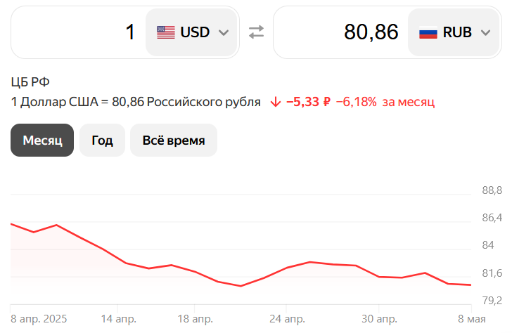 Официальный курс доллара установленный на 8 мая составляет 80,8612 рублей. Кто-то считает, что это нормальное значение, а кто-то ждет девальвации рубля. Предлагаю рассмотреть аргументы обеих сторон.
