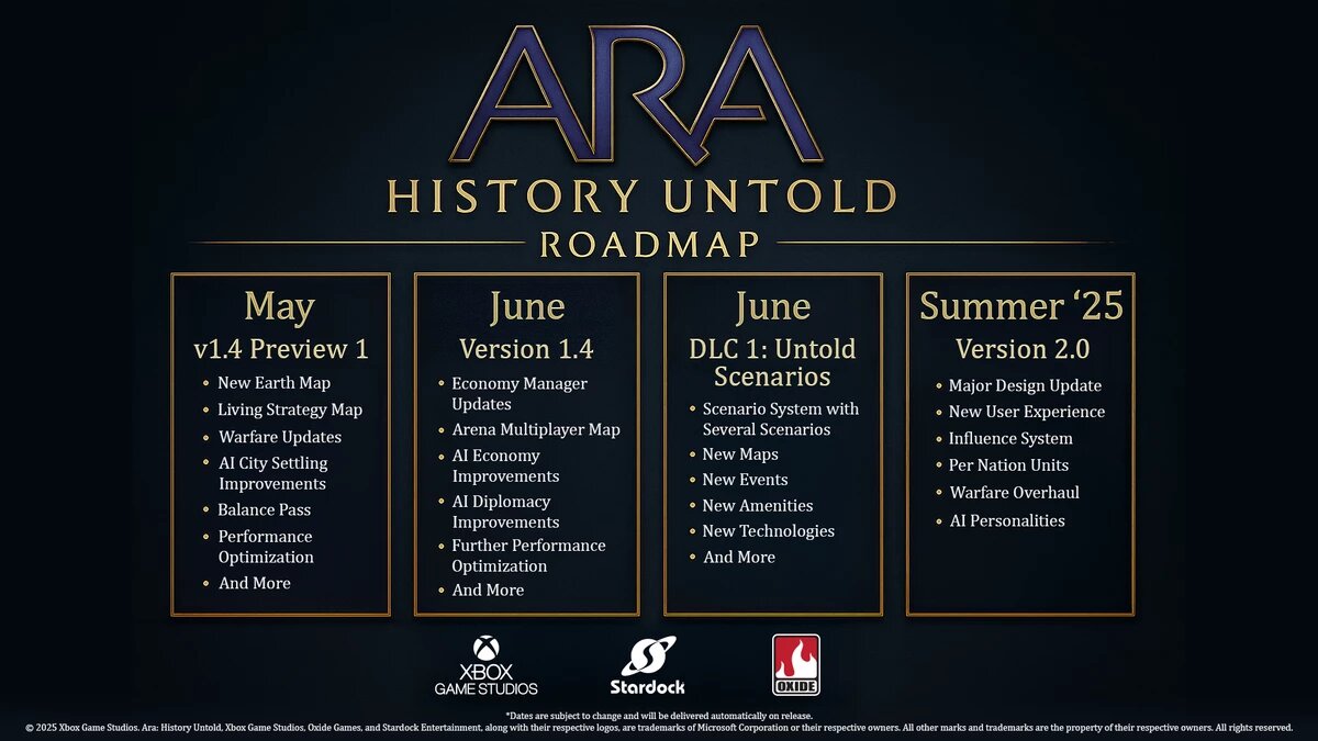 С релизом Civilization 7 фанаты глобальных стратегий ждали рождение нового короля жанра. Но король родился кривым, косым и хромым и до сих пор остается таковым. Так что нет ничего удивительного, что команда стратегии Ara: History Untold решила попытать удачу, объявив о планах по масштабному обновлению игры. С мая 2025 года развитие игры взяла на себя студия Stardock (известная по Sins of a Solar Empire). В планах команды — глобальный апдейт, включающий добавление карты Земли, доработку ИИ, пересмотр боевой системы, оптимизацию производительности и общий ребаланс. Уже в июне ожидается крупный патч, который улучшит дипломатию и экономику, а также выпуск DLC «Неизвестные сценарии» с новыми картами, событиями и технологиями. https://www.youtube.com/watch?v=rydV9OxFzwA Главное отличие Ara от других 4X-стратегий — гибкая система победы. Вместо жестких условий вроде научной или культурной победы игроки зарабатывают очки Престижа за любые действия: будь то строительство городов, ведение войн и