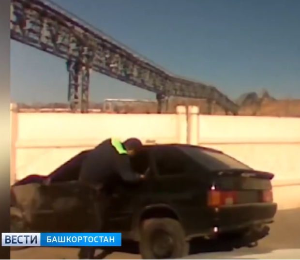 В Башкирии пьяный водитель без номеров закрылся в салоне авто после погони