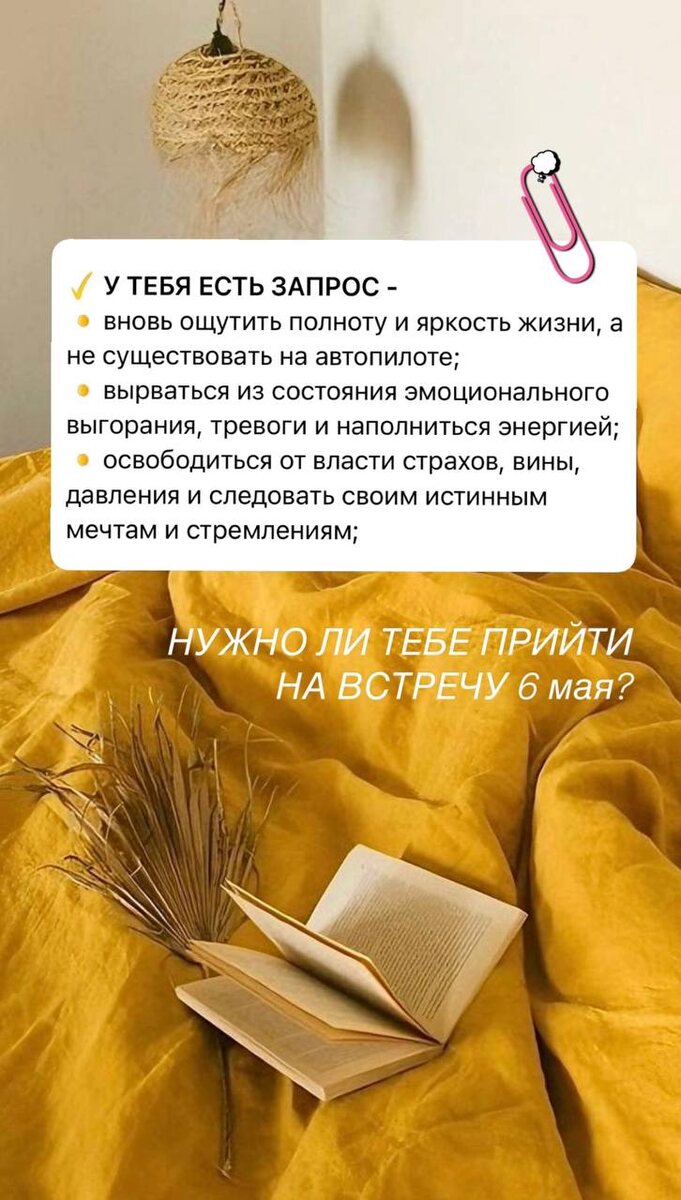 💛💛💛💛💛💛💛💛💛💛💛 💛💛💛💛💛💛💛💛💛💛 Живая встреча 06.05 в 19:00 Девочка моя, это встреча НЕ со мной 🙄 Это ВСТРЕЧА С НОВОЙ ТОБОЙ! ❔НУЖНО ЛИ ТЕБЕ ЭТО? Я предлагаю тебе очень простой 💛💛💛🔘💛💛💛💛 чтобы понять, ПОДХОДИТ ЛИ ТЕБЕ ЭТА ВСТРЕЧА? Отмечай свои "ДА" и принимай решение прямой сейчас 💞 ✅У ТЕБЯ ЕСТЬ ЗАПРОС - 😑вновь ощутить полноту и яркость жизни, а не существовать на автопилоте; 😑вырваться из состояния эмоционального выгорания, тревоги и наполниться энергией; 😑освободиться от власти страхов, вины, давления и следовать своим истинным мечтам и стремлениям; 😑живешь как черновик и испытываешь страх, что годы идут, а ты все ищешь свое предназначение ходя по кругу; 👍 Если совпало более 3 пунктов - ПОЗДРАВЛЯЮ, ЭТА ВСТРЕЧА ДЛЯ ТЕБЯ! ГОТОВА К ИЗМЕНЕНИЯМ - на встрече ты уберешь мысли, которые тебя стопорят, высвободишь кучу энергии и желаемое начнет само прилипать к тебе? ✅ФОРМАТ ВСТРЕЧИ - Екатеринбург, оффлайн, 06.05 с 19:00, длительность 2 часа, без сложных тер