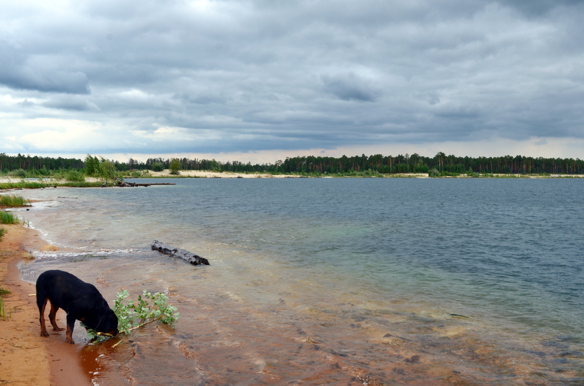 Однажды мой ротвейлер испытал на берегу таёжного озера глубочайший шок. Погода была ненастная, пасмурно, срывался дождик.