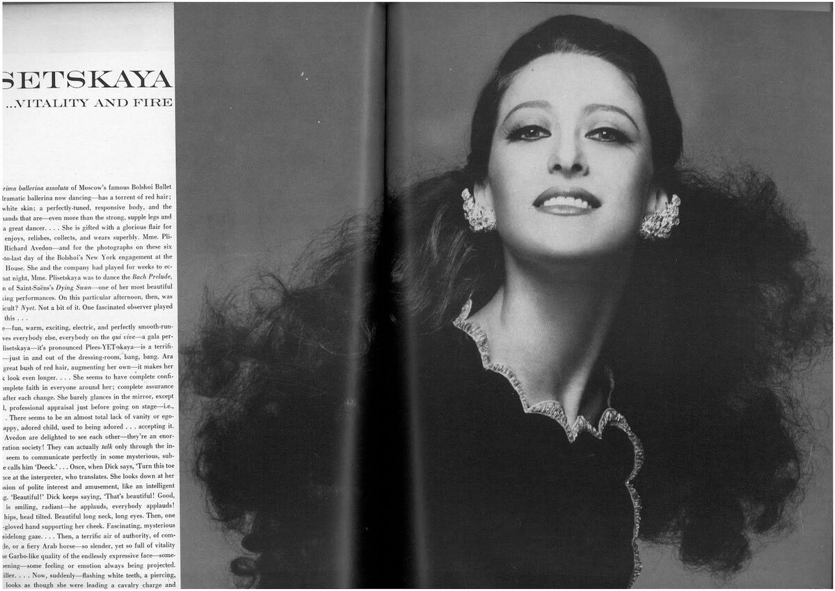 В 1968 году балерина сыграла Бетси в экранизации романа «Анна Каренина» Зархи. Также Плисецкая снялась в роли Дезире в ленте «Чайковский» Таланкина. Затем Вайткус позвал танцовщицу на роль музы Чюрлениса в картину «Зодиак». В 1976 году актриса сыграла звезду балета и телефильме «Фантазия» по повести Тургенева «Вешние воды».