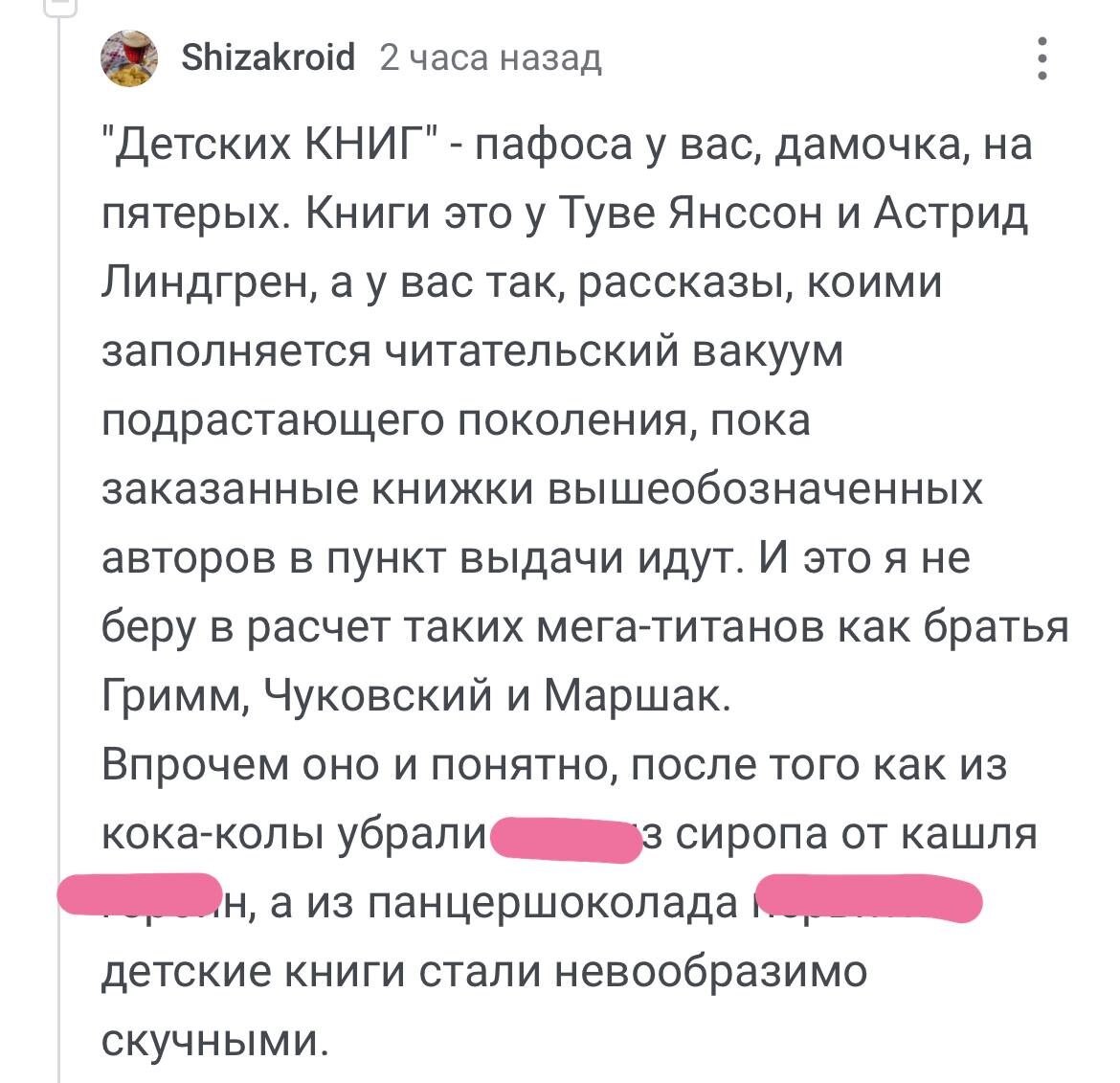 Прилетел комментарий о качестве современной детской литературы