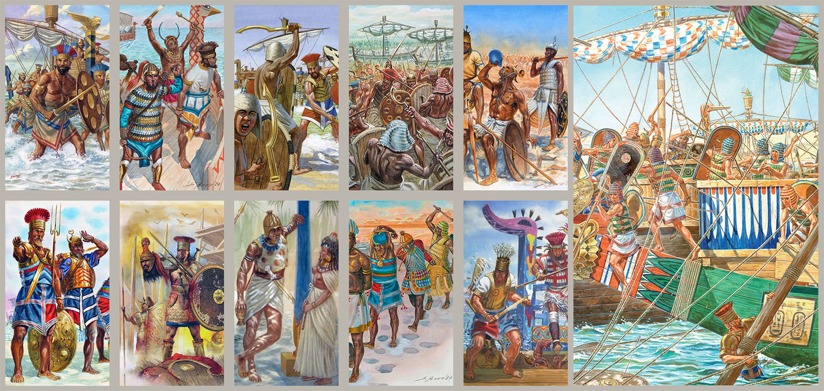 Обратимся к событиям на Ближнем Востоке и в Эгеиде после 1200 года до н.э.. Ключевым элементом популярного нарратива о катастрофе бронзового века являются так называемые «народы моря». Согласно этой теории, масштабные миграции воинственных племён стали главной причиной разрушения цивилизаций позднего бронзового века: Хеттского царства, Микенской Греции, городов Леванта и даже потрясений в Египте.