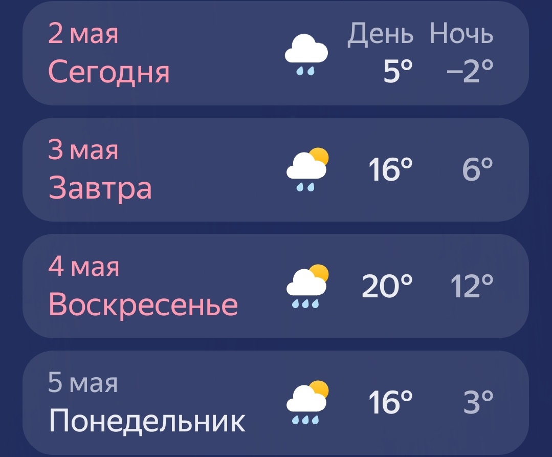 Не погода. А не пойми чего, а на 9 мая опять похолодание и дожди.