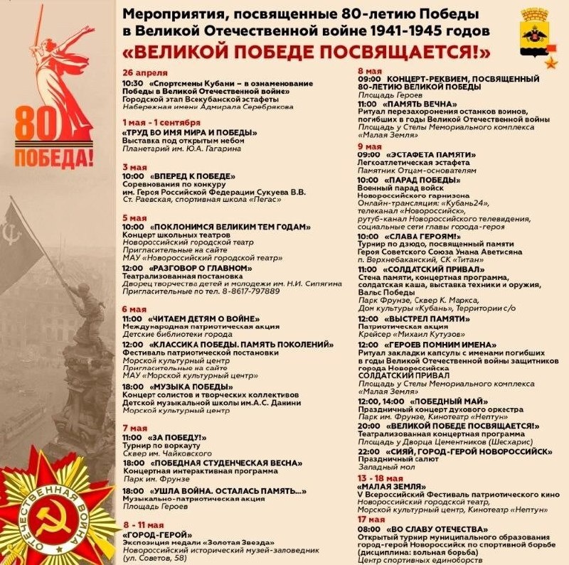 Программа празднования 80-летия Великой Победы в Новороссийске 📲 @nvrsk_online
