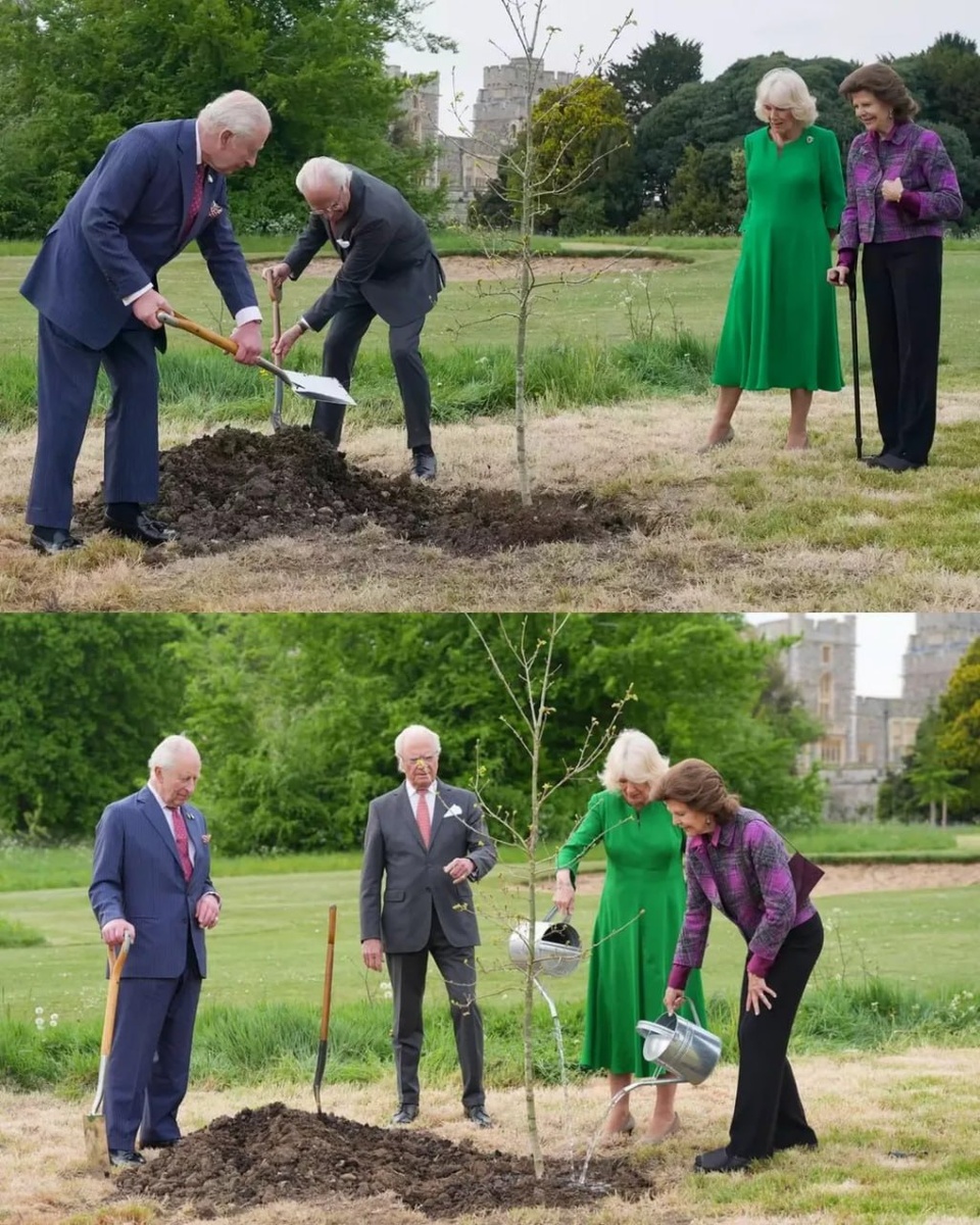 К Чарльзу и Камилле заскочили шведы - Карл Густав и Сильвия 🇸🇪 короли посадили дерево в парке у Виндзора - шведский дуб, саженец из сада