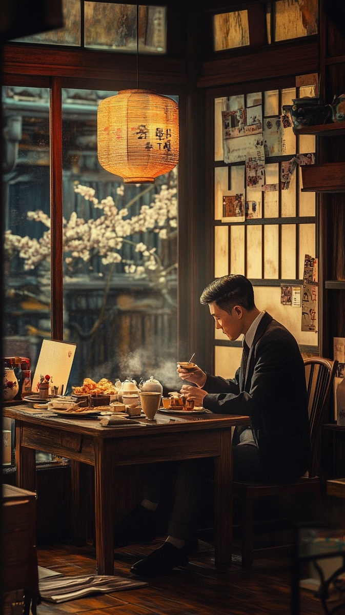 Создано на основе запроса: cozy London room, man in 60s fashion enjoying Japanese snacks with tea, nostalgic mood, warm lighting --- Автоперевод: Уютная лондонская комната, мужчина в моде 60 -х годов, наслаждаясь японскими закусками с чаем, ностальгическим настроением, теплым освещением Как тебе вариант? 🤔 https://dzen.ru/id/65c0c65c86e4f837c27b24d7 #ИИ #AI #нейросеть #midjourney #art