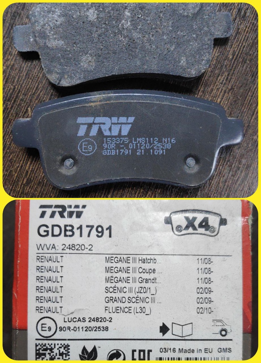 Тормозные колодки GDB1791 TRW для Renault: надежность и идеальная совместимость! Оглавление: - Технические характеристики - Комплектация - Оригинальные номера - Совместимость - Преимущества - Заключение Если вы ищете идеальный вариант для замены тормозных колодок вашего Renault, комплект GDB1791 от TRW — это ваш выбор! Эти колодки специально разработаны для дисковых тормозных систем и обладают множеством преимуществ, которые оценят все автолюбители. Технические характеристики: - Ширина: 106,1 мм - Высота: 45,5 мм - Толщина: 16 мм - Вес комплекта: 1,08 кг - Материал: Низко-металлический состав, обеспечивающий идеальный баланс между износостойкостью и эффективностью торможения. - Монтаж: Задняя ось - Сертификация: ECE-R90 — гарантия соответствия европейским стандартам безопасности. Комплектация: В комплект входят все необходимые элементы для быстрой и простой установки: - Тормозные колодки - Монтажные винты - Подробная инструкция по установке, что делает процесс доступным даже для но