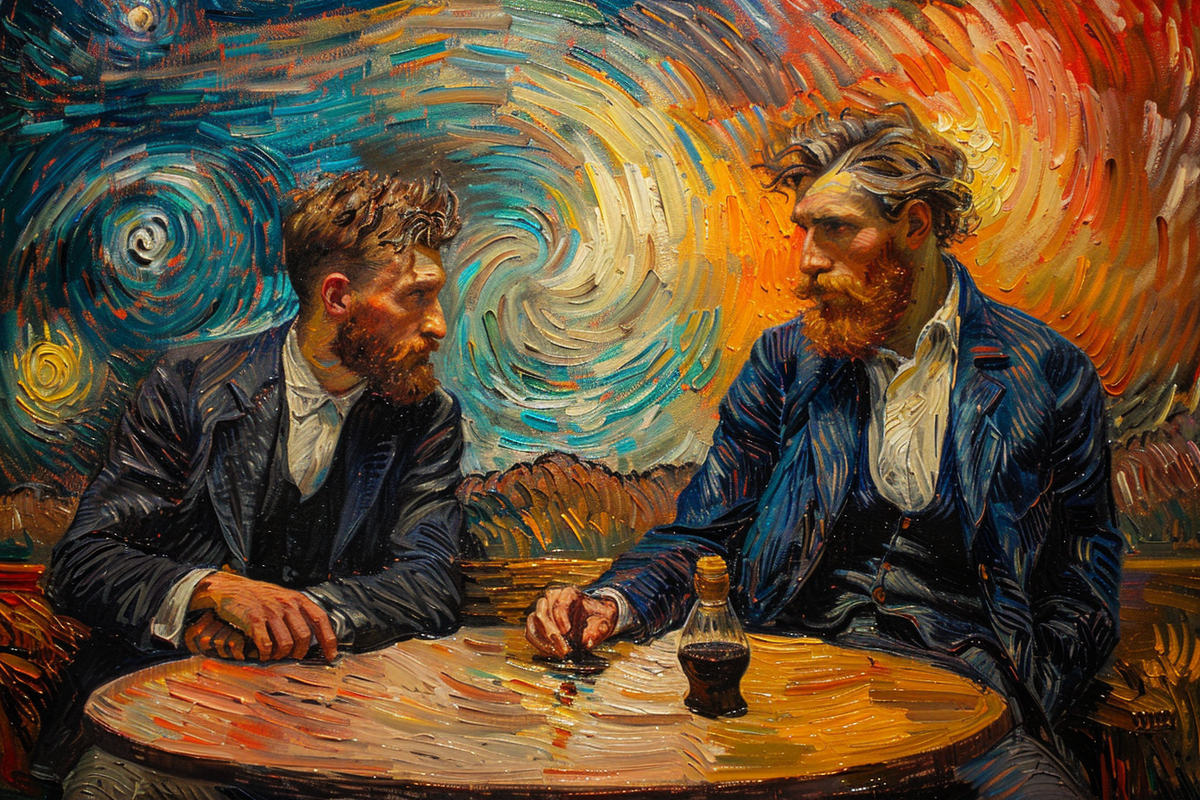 И Гоген приехал. Да, он приехал. В ту осень, когда воздух уже начинал остывать, но земля все еще хранила летний жар, он явился в этот Желтый дом – дом, который Винсент видел не просто стенами и крышей, а символом, золотистой колыбелью для их мечты, для их "Мастерской", для этого, как он говорил, будущего. И поначалу... о, поначалу это было что-то. Две силы, два вихря, запертые в четырех стенах, спорящие, кричащие, смеющиеся, мажущие краску, дышащие скипидаром и пылью, видящие мир – каждый по-своему, и в этом была вся беда – с какой-то нечеловеческой, пронзительной ясностью. Винсент – весь нерв, вся плоть, весь крик цвета, работающий так, словно за ним гнался сам дьявол, пытаясь поймать мимолетное мгновение, жар солнца на лице крестьянина, изгиб кипариса под ветром, – все "здесь и сейчас", на холсте, густым, почти скульптурным мазком. А Гоген – Гоген был другим. Более холодный, более расчетливый, с глазами, которые видели не только то, что есть, но и то, что могло бы быть, или что означало то, что есть, уходящий в свои символы, в свое воображение, в какие-то далекие, еще не виденные им земли.