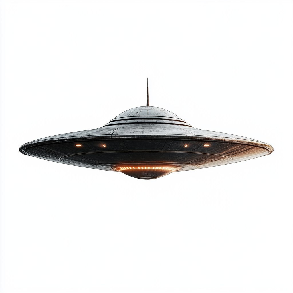 Создано на основе запроса: hyperrealistic, image of a ufo flying saucer against a white background